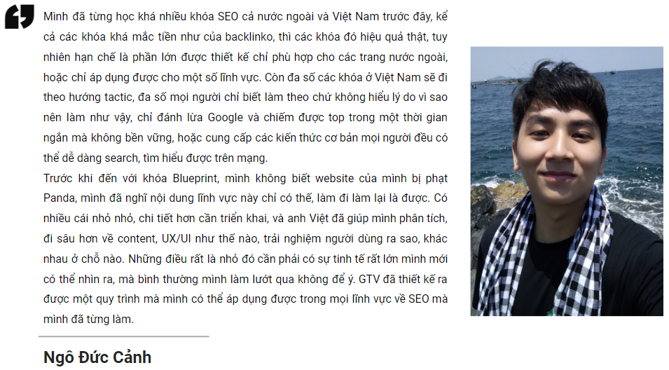 Phương pháp đào tạo SEO kết hợp hàng loạt Case Study thực tế của các Website thuộc E-commerce, Dịch vụ, Thông tin sẽ giúp bạn nhận ra ngay trong quá trình học: “À, phương pháp này thật sự có hiệu quả!”